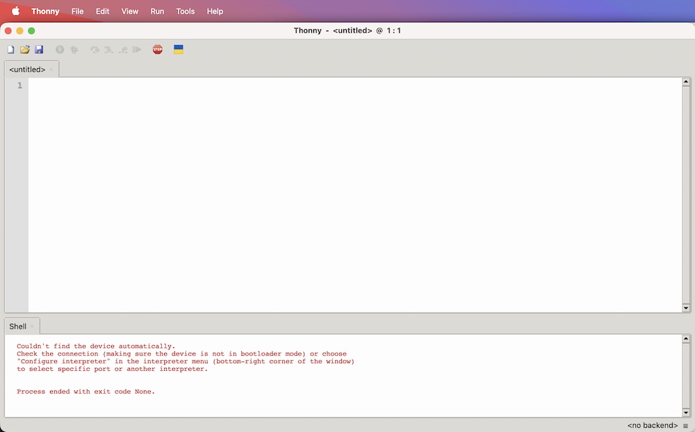 If the installation succeeds, the Shell at the bottom of the editor window will display “MicroPython v.1.xx.x”.