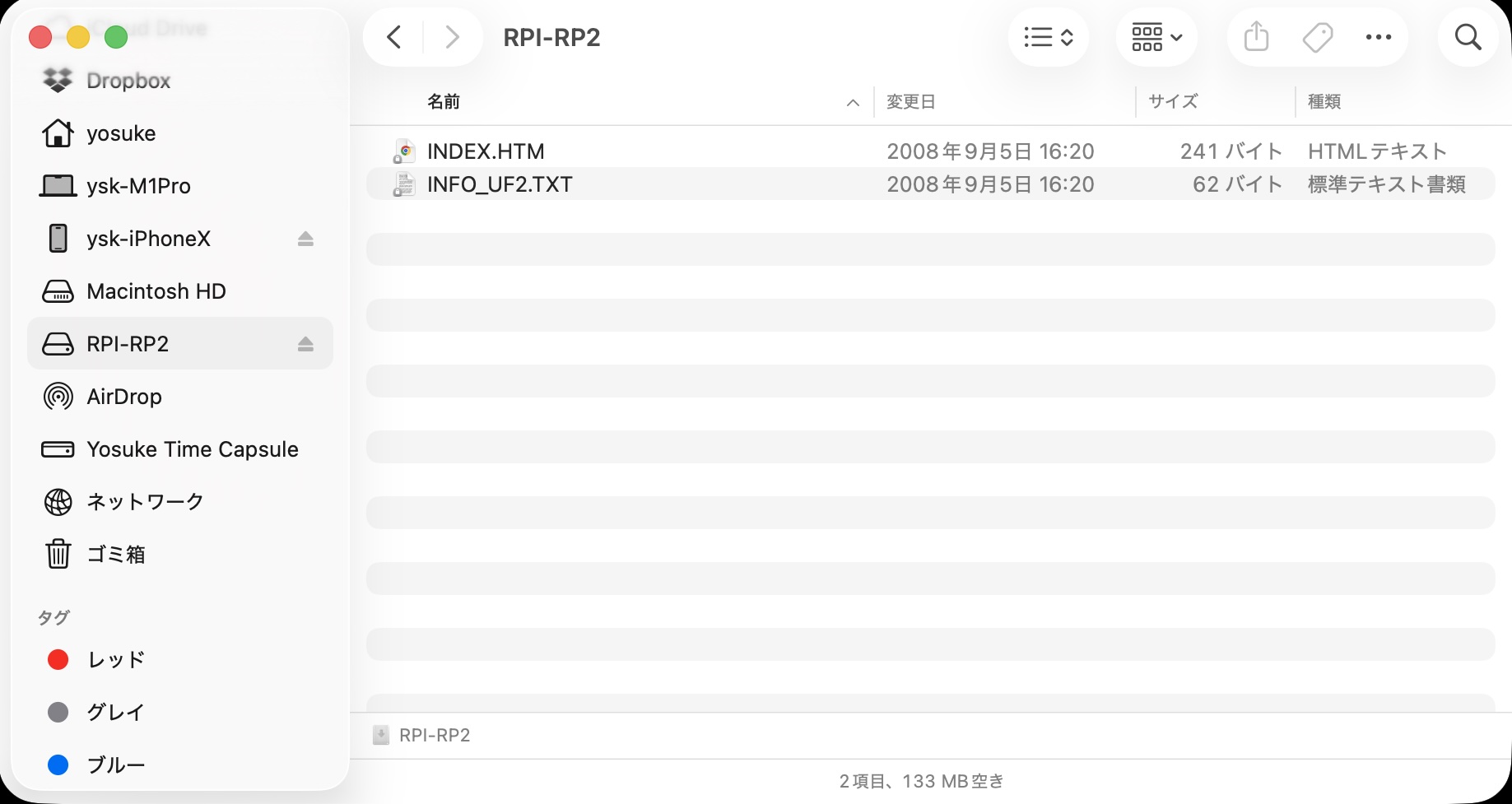 Once recognized by the PC, it will appear as a USB device named “RPI-RP2” as shown below.