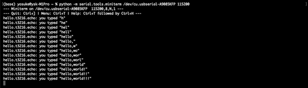 Launch a simple terminal (miniterm) in Python and try entering some text. miniterm is launched as follows