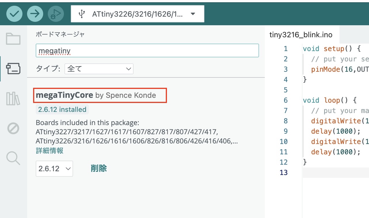 - Chip: Select Attiny3216