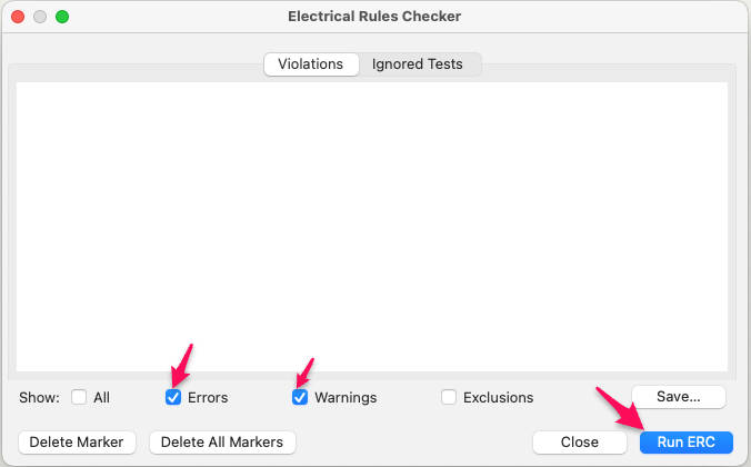 ERC (Electrical Rule Check) Check the schematic for electrical connection errors.