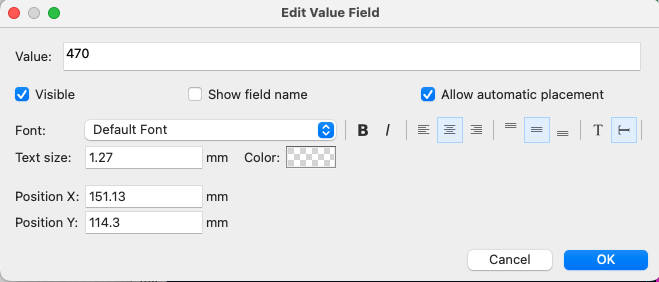 Assign values to the resistors. Select a resistor and press V to open the Edit Value Field dialog.