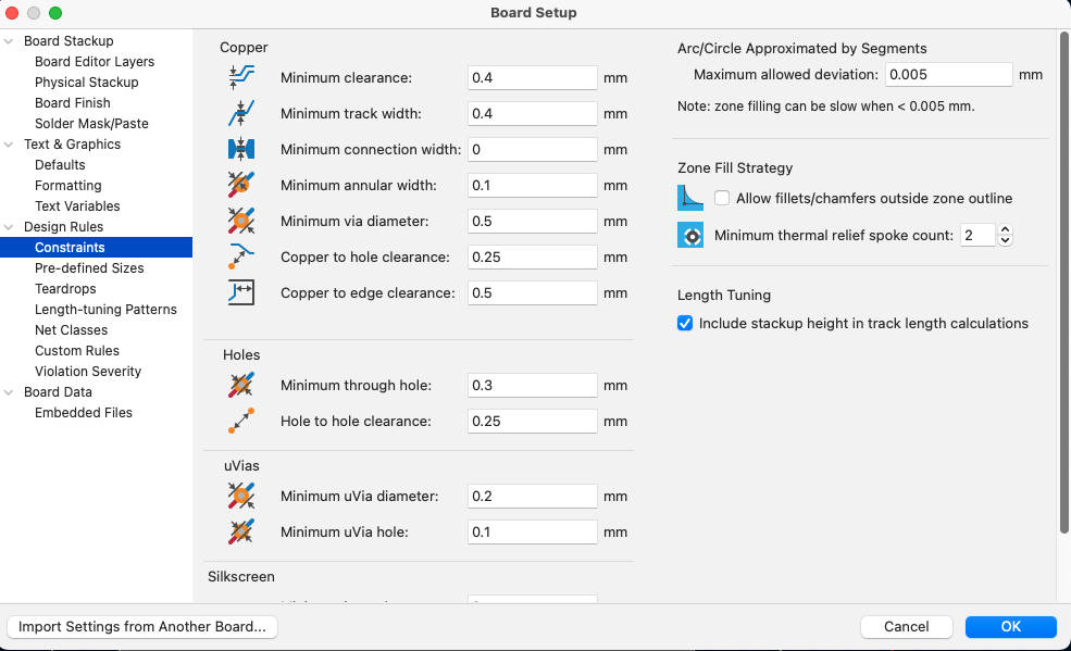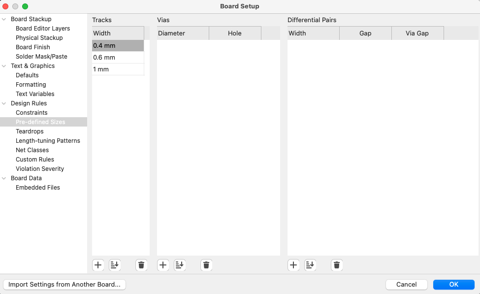 Before starting the routing process, design rules such as trace width and clearance must be defined. They ensure that: