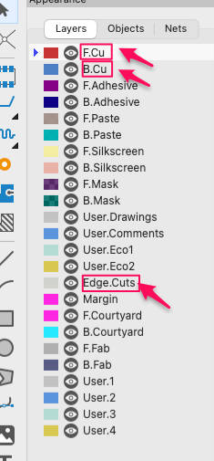 Draw the board outline on the Edge.Cuts layer.