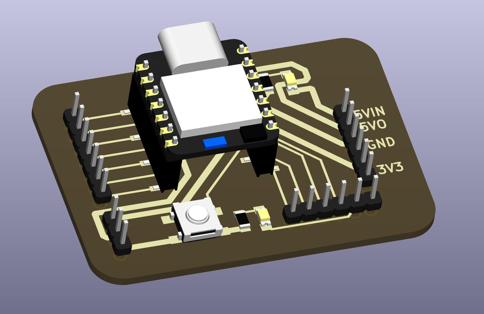 To create a generic breakout board for the XIAO, all pins are routed to pin headers.