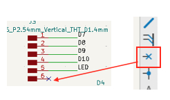 Move the cursor near a component pin (the small circle). KiCad will automatically enter wiring mode. Alternatively, press W or select the Wiring tool from the toolbar.