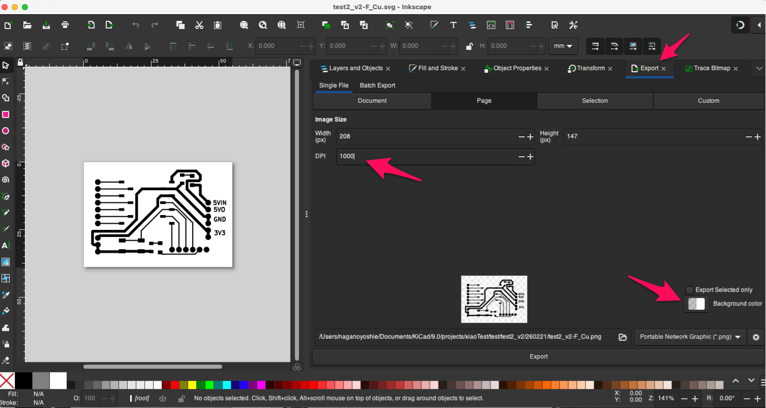 - Select Export tab, then change the DPI to 1000.