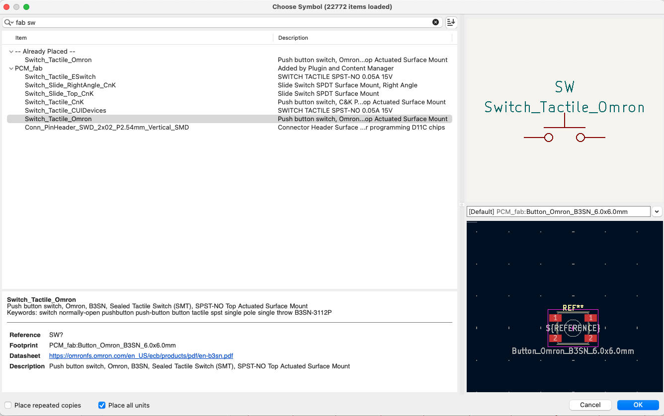 Select tactile switch in the fab library.